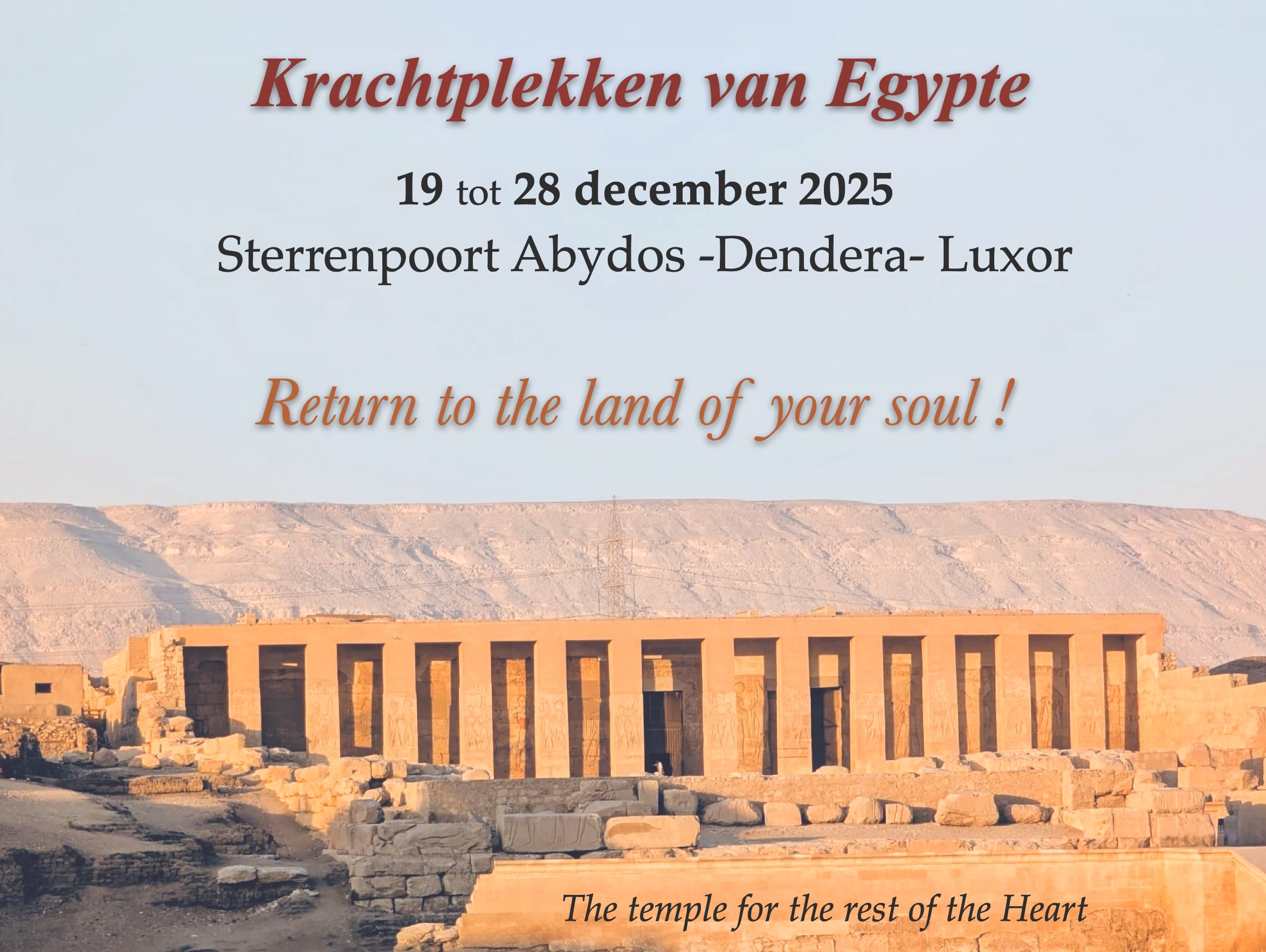 19 tot 28 December 2025; Krachtplekken van Egypte; Stargate Abydos, Dendera, Luxor (vol)